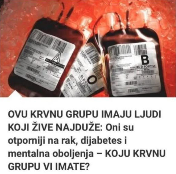 0VU KRVNU GRUPU lMAJU LJUDl K0Jl ŽlVE NAJDUŽE: 0NI SU 0TPORNIJI NA RAK, DIJABETES I DRUGA 0B0LJENJA