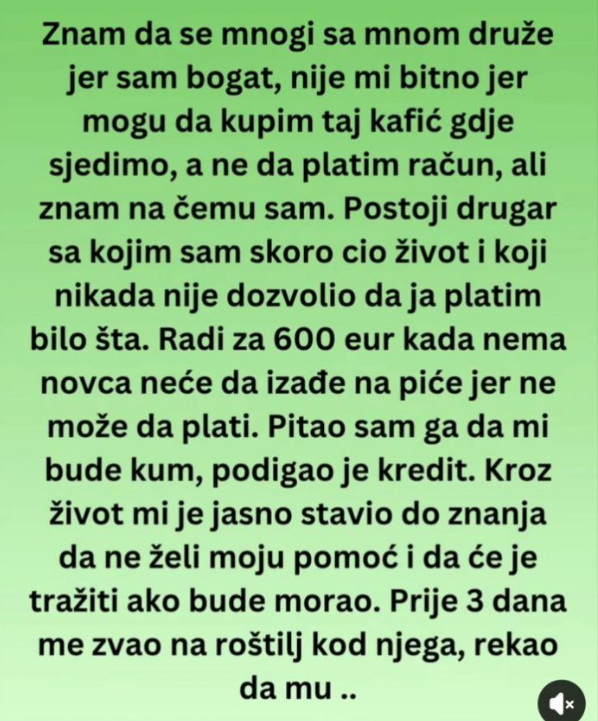 U svijetu u kojem se ljudi često mjere statusom i novcem, ova priča podsjeća da se pravi ljudi prepoznaju po dosljednosti i časti. Bogatstvo ne gradi čovjeka – karakter ga otkriva. Zato su riječi koje je bogati prijatelj izgovorio ostale trajno urezane: „Ponosan sam što poznajem takvog čovjeka.“