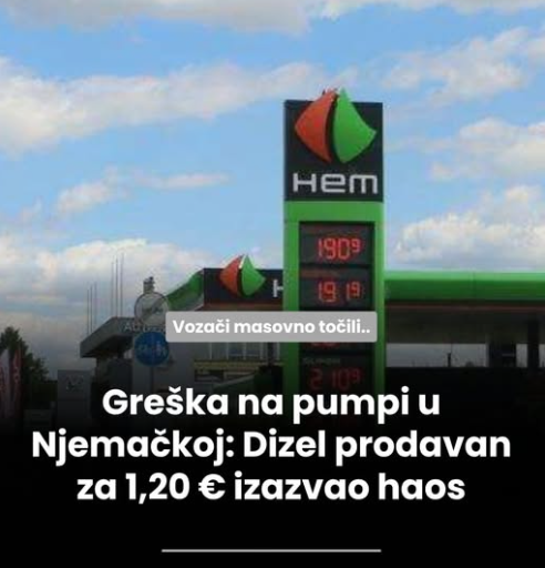 U njemačkom gradu Bünde dogodio se nesvakidašnji incident koji je tokom jedne noći izazvao veliku pomutnju među vozačima. Na jednoj benzinskoj pumpi došlo je do greške prilikom prikaza cijena goriva, pa je dizel nakratko bio prodavan za samo 1,20 eura po litri, što je znatno manje od uobičajenih cijena koje u Njemačka trenutno prelaze 2 eura.