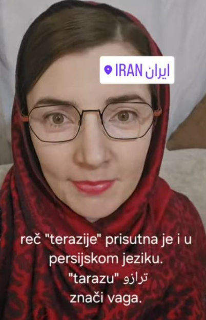 Zanimljivo joj je i to što između srpskog i persijskog jezika postoji mnogo sličnih reči, poput: sirće, kafa, šećer, čarape, baklava, ćilim, kašika, ćufta i ćevap.