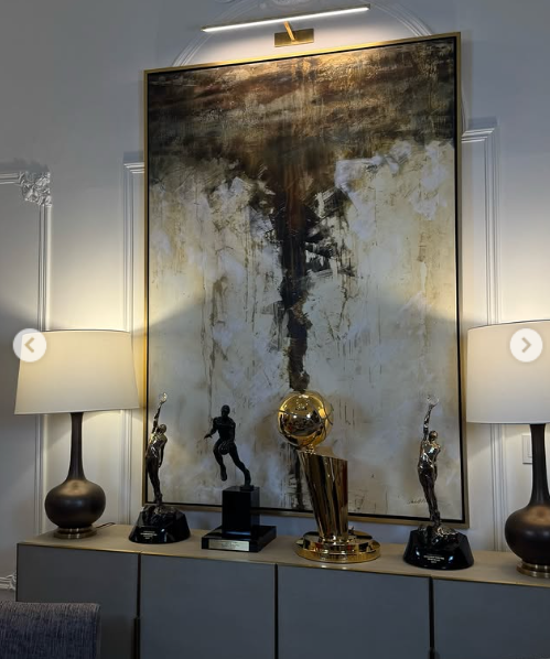 Najveću pažnju u prostoriji privlače – očekivano – trofeji. U dnevnoj sobi dominira replika čuvenog Larry O'Brien Trophy, koji je Jokić osvojio sa Denverom kada su 2023. godine postali šampioni NBA lige.